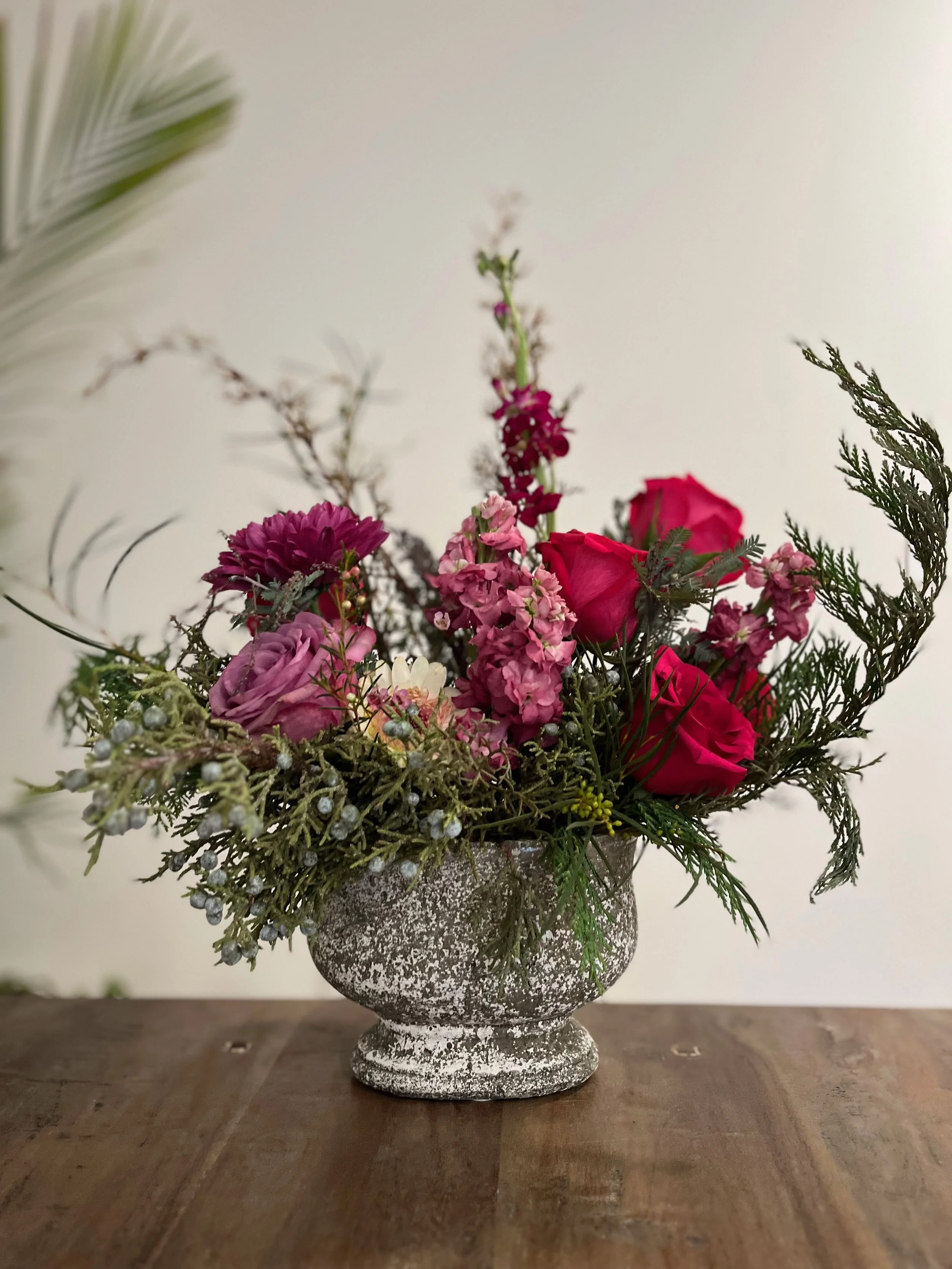 a beautiful holiday themed arrangement, perfect for your tablescape